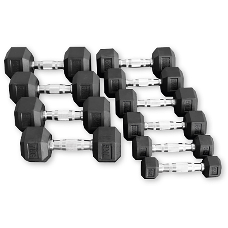 Die tanga sports® Hex-Hanteln haben einen sehr robusten Stahlkern mit aufgepresster Gummi-Ummantelung und KG-Prägung. Der ergonomische Griff (13 cm Länge) hat ein Kreuzrändelung und verhindert ein Abrutschen. Die ca. 1 cm starke Gummi-Ummantelung macht diese Kurzhanteln besonders langlebig und bodenschonend.