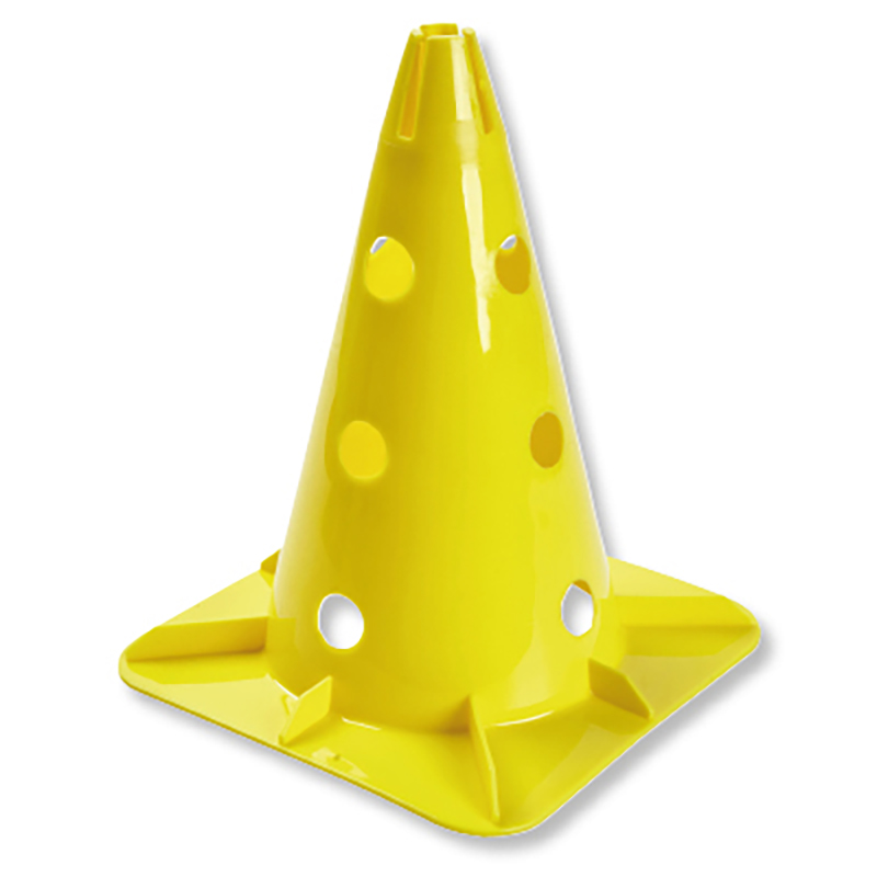 Dieser Lochkegel ist mit zwölf Löchern ausgestattet und kann in Kombination mit Turnstäben auch als Hürde, Slalomstange oder kleines Tor benutzt werden. Ausserdem kommen die Markierkegel gerne bei verschiedenen Teamsportarten in den Trainingseinheiten zum Einsatz. Vielfältige Übungsformen zu Koordination, Dribbling oder Beweglichkeit sind möglich.