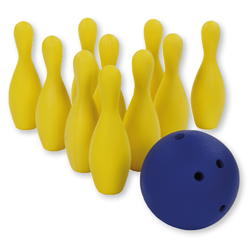 Das Schaumstoff Soft Bowling Set kann fast überall zum Spielen genutzt werden. Die 10 Kegel und die Kugel mit Grifflöchern bestehen aus PE-Schaum aus Schaumstoff. So besteht für die Wohnungseinrichtung kein Risiko, aber auch im Freien kann beherzt die Kugel gerollt werden; geparkte Autos werden bei einem Fehlwurf nicht beschädigt. Mit unserem Kegelspiel haben auch Kinder die Möglichkeit den attraktiven Sport zu erlernen und ihre Geschicklichkeit und feinmotorischen Fähigkeiten zu trainieren. In spannenden Spielen können Kinder, Jugendliche und Erwachsene ihre Zielsicherheit und Präzision unter Beweis stellen. Treffen Sie mit der Bowlingkugel die zuvor aufgestellten Bowling Pins und räumen Sie am besten gleich mit Ihrem ersten Wurf alle Pins ab - Strike! Sollte es nicht auf Anhieb funktionieren und bei dem Kegelspiel eine gewisse Anzahl an Pins oder Kegel stehenbleiben, dann nutzen Sie Ihren zweiten Versuch und stossen alle noch stehenden Bowling Pins um.