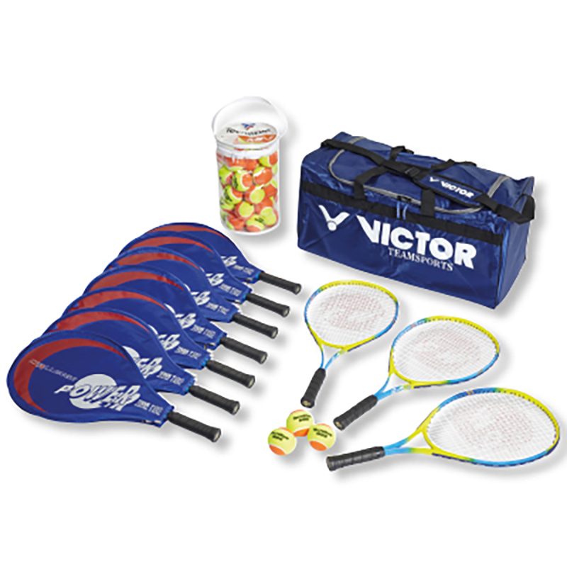 Unser Tennis-Paket KIDS ist für den jungen Tennis-Nachwuchs ausgelegt und besteht aus 10 Tennisschlägern von Victor (Tennisschläger Länge 58,5 cm, geeignet für Kinder von ca. 7 bis 10 Jahren), 40 Methodik-Tennisbällen Stage 2 (ITF zugelassener Tennisball für Kinder, etwa 50 % langsamer), einer praktischen Tennisschlägertasche (aus Nylon mit Tragegurt) und einem Regelposter für Tennisregeln. Das Tennispaket KIDS ist besonders für Schulsport und alltägliches Tennis-Training für Kinder (ca. 7 bis 10 Jahre) geeignet. Die Tennisschläger, Tennisbälle und die Schlägertasche haben ein hohe Qualität.