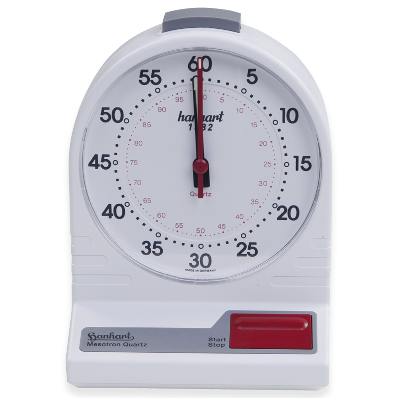 Die Tischstoppuhr ist für alle Bereiche wie Schule, Sport, Labor und Industrie geeignet. Mit der Mesotron bietet Hanhart eine leicht ablesbare, quartzgesteuerte Analog-Tisch-/Wandstoppuhr. Durch die ergonomische Gestaltung hat diese Uhr eine optimale Standfestigkeit. Das übersichtliche Zifferblatt hat eine nachleuchtende Minuterie und nachleuchtende Zeiger.