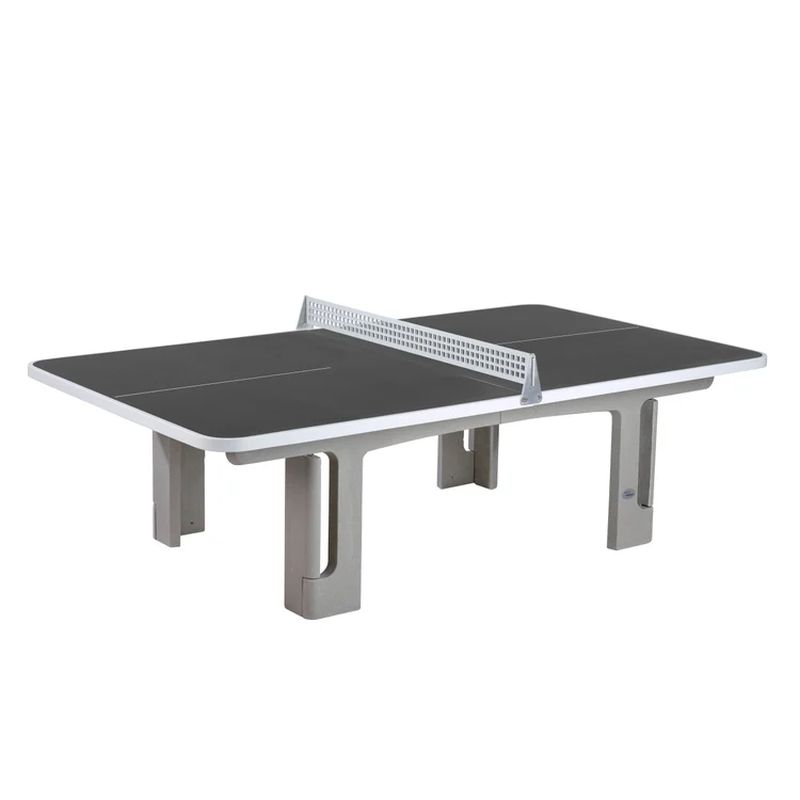2 Plattenhälften aus wetterfestem Polymerbeton 30 mm stark mit umlaufendem Kantenschutzprofil aus weissem Hart-PVC. Untergestell aus stahlarmiertem Polymerbeton mit Bodenverankerung. Gewicht ca. 400 kg, (schwerstes Teil ca. 130 kg).