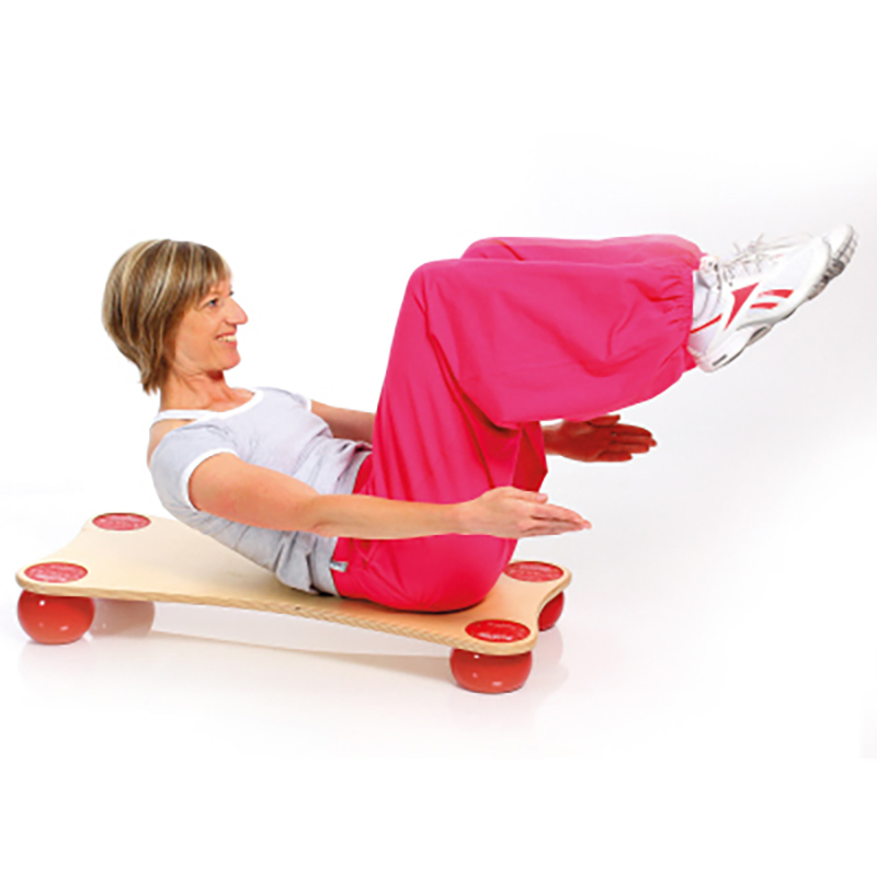 Das Balance Board bietet mit den luftgefüllten Bällen die Möglichkeit auf eine neuartiges und innovatives Training für Stäbilität und Dynamik. Das Balancetraining umfasst die Wahrnehmung und Reizverarbeitung und verbessert Gleichgewicht und Stabilität. Die Übungen auf dem Ballstep aktivieren bis in die Tiefenmuskulatur und stärken diese stabilisierende Muskulatur. Drehungen sind auf der stabilen Holzplatte ebenso möglich wie schnelle Bewegungen und Sprünge, die durch die federnde Wirkung der Bälle gelenkschonend ausgeführt werden können.