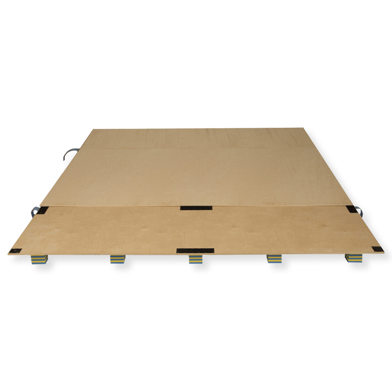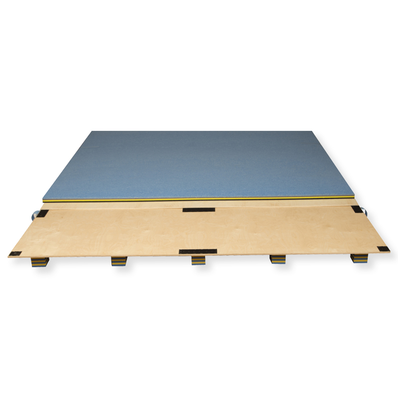 Hochelastische und flexible mehrschichtige Doppel-Sperrholzplatten mit speziell abgestimmten und angeordneten Dämpfungselementen. Ausserordentlichhohe Federkraft - für Diagonalbahn - zur Übung beim Bodenturnen. Diese Federkraft sowie die Dämpfung sind so aufeinander abgestimmt, dass Kraftspitzen reduziert werden.