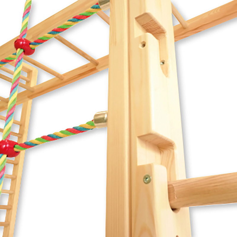 Die Grossfeld Sprossenwand und das Kletternetz können mit Führungsschienen und Arretierungsbolzen in 4 verschiedene Position gestellt werden: senkrecht, 2 x schräg, waagerecht. Das 5. Element kann mit einer Reckstange oder mit einem Rollenelement genutzt werden (beide Alternativen im Lieferumfang enthalten). Das Reck-/Rollenelement ist zudem schwenkbar mit einem 90° Winkel. Inklusive Beschläge, Befestigungsmaterial und Montageanleitung.