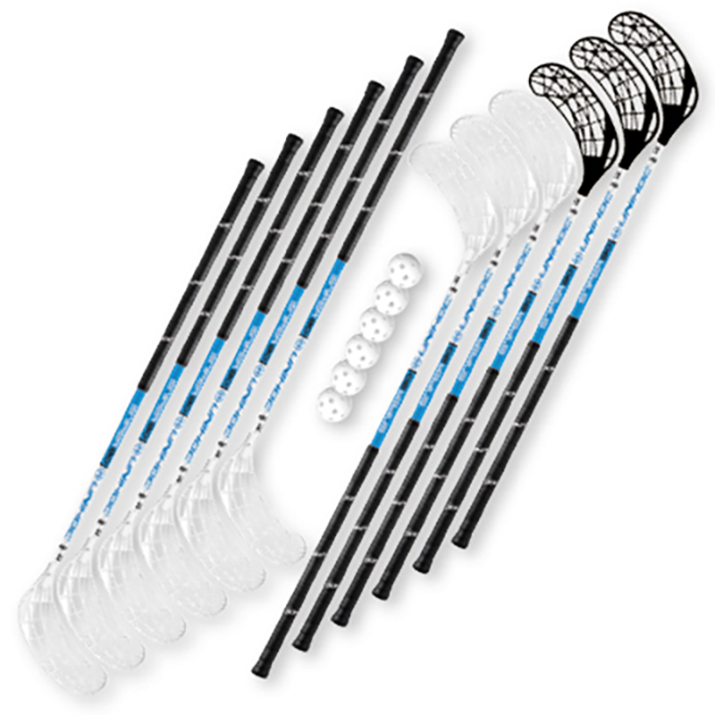 Länge 87 cm. Qualitativer Unihockeystock der Marke UNIHOC mit gutem Preis-/Leistungsverhältnis. IFF-zertifiziert, mit vorgebogener ACE-Schaufel für leichtere Ballkontrolle. 12-er Set (9 x weiss links, 3 x schwarz rechts), inkl. 6 Bälle und 1 grosse Stocktasche)