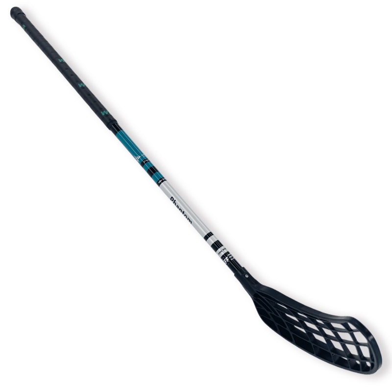 Konischer Fiberglas Schaft, Länge 95 cm (Flex27) in grün-weissem Design mit schwarzem Griffband.