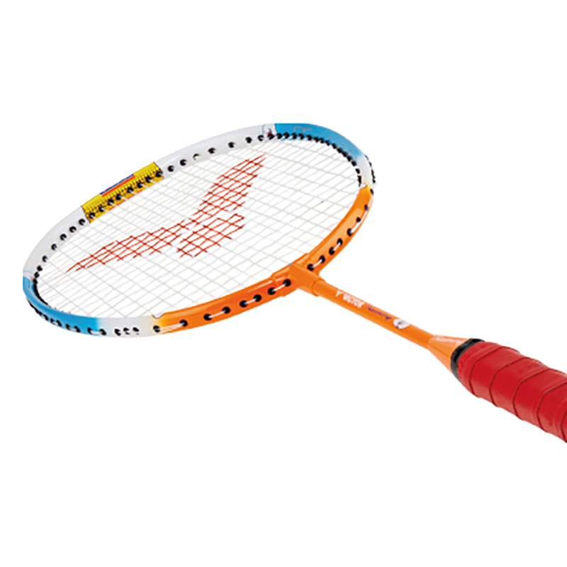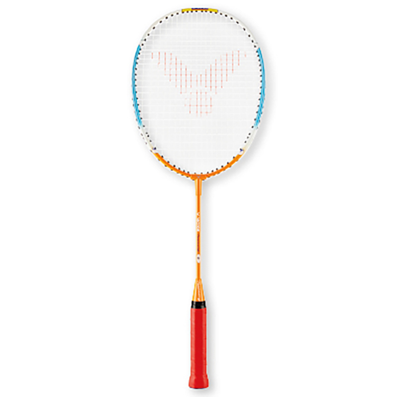 Der Victor Badmintonschläger TRAINING ist ein spezieller Methodik- & Kinderschläger mit einem verkürzten Schaft (Länge 58 cm) für Kinder von 7 - 9 Jahren. Der tropfenförmige Kopf mit haltbarer multifiler Kunstsaite sorgt durch seine spezielle Kopfform für ein leichteres Treffen des Balles und einen höherliegenden Sweet Spot. Das Racket hat einen dünnen, ovalen Griff für die richtige Haltung und besteht aus Stahl/Aluminium. Gewicht ca. 98 g.