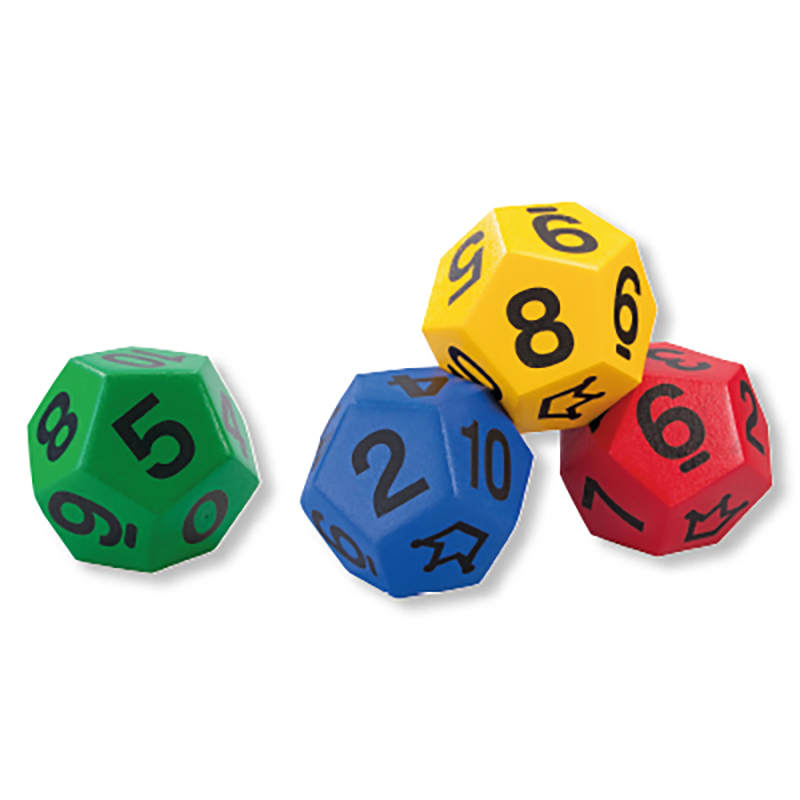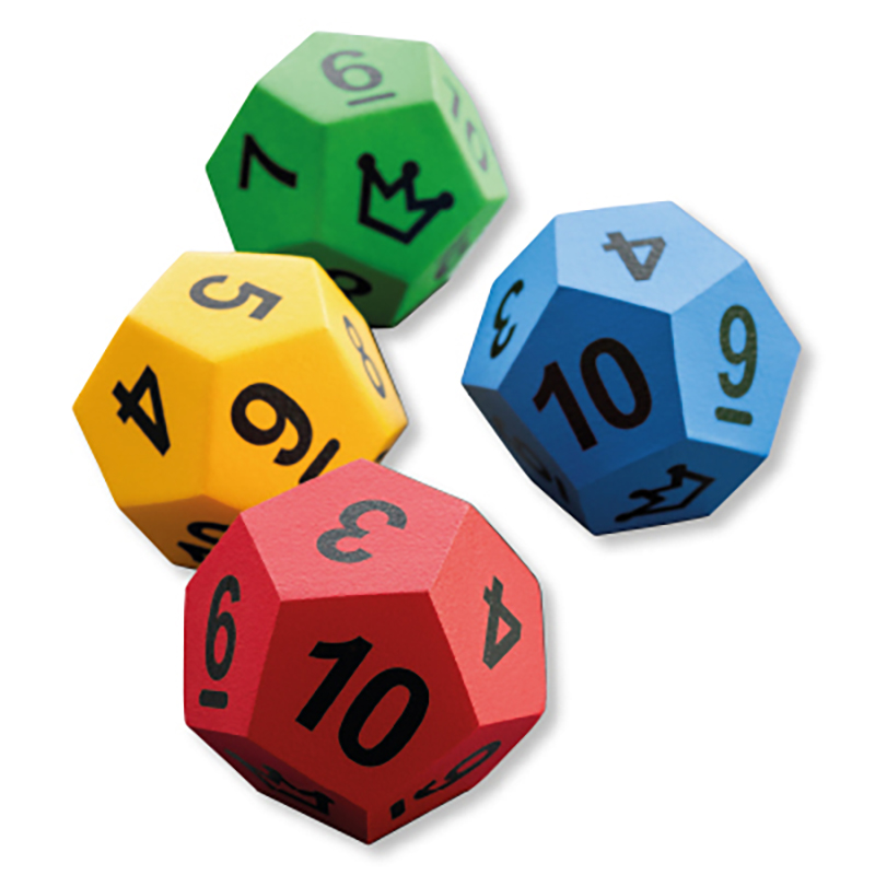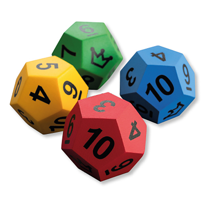 Der 12-flächige Volley® ELE- Würfel hat schwarz aufgedruckte Zahlen von 0-10 und einen Joker. Er ist ideal für Spass- und Lernspiele geeignet.