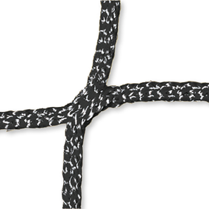 nach internationaler Vorschrift. Knotenloses Wettkampfnetz aus Polypropylen, hochfest, ca. 4 mm stark, mit Kevlar-Spannseil und seitlich eingefassten Glasfaser-Polyesterstäben, 6-Punkte-Aufhängung und 6 Spannschnüren. Oben mit 70 mm breitem, unten mit 50 mm breitem Einfassband in weiss.