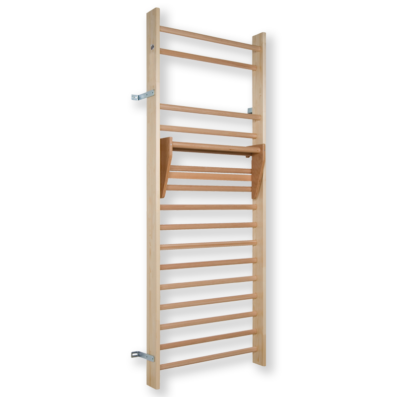 Die Einhängesprosse macht eine Sprossenwand noch attraktiver, da weitere Übungen wie Klimmzüge trainiert werden können. Die Sprosse einfach auf beliebiger Höhe einhängen und bei Nichtgebrauch wieder abnehmen. Geeignet für Sporthalle, Fitnessstudio, Physiotherapie und für den Gebrauch in den eigenen vier Wänden.