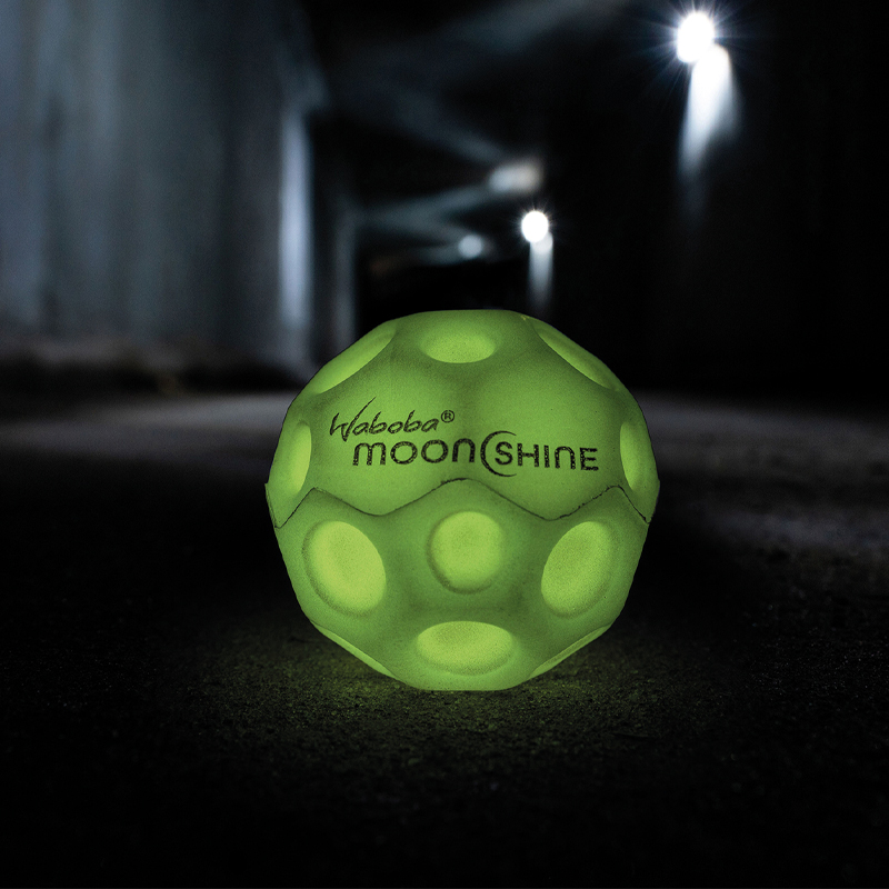Der Waboba® Moonshine ist eine neue Version des bekannten Waboba® Moon Balles. Im inneren des Balles befindet sich eine kleine LED die beim Aufprall anfängt zu leuchten. Er hat ein sehr leichtes Gewicht, eine enorme Sprungkraft und einen besonderen Spin aufgrund seiner speziellen Form.