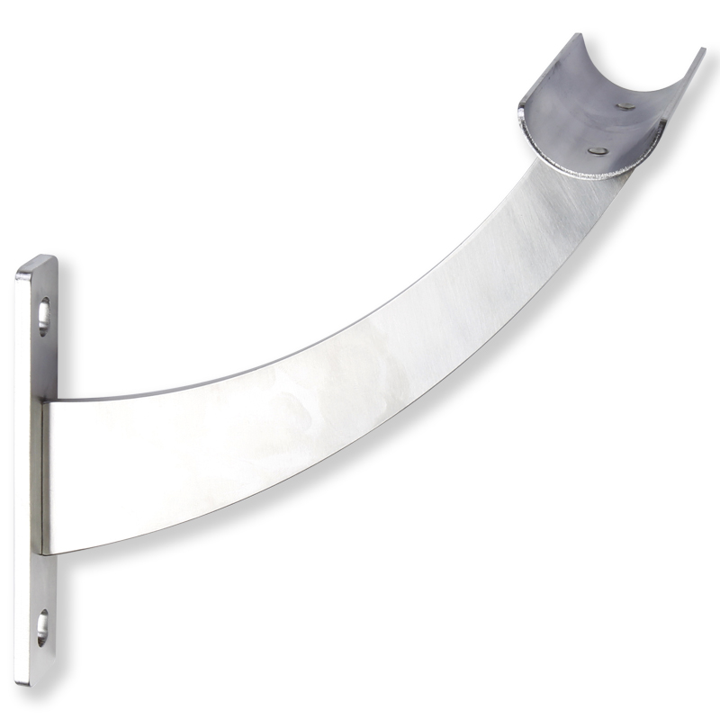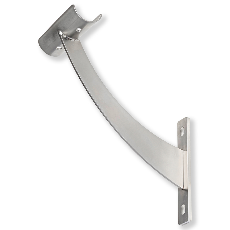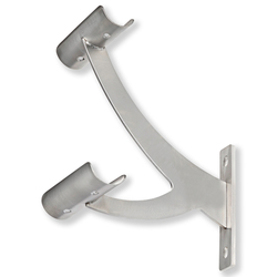 Ballettstangenhalter zur Wandmontage aus Edelstahl. Für eine Ballettstange der Länge 250 cm sind 3 Wandhalter erforderlich. Lieferung ohne Ballettstange.