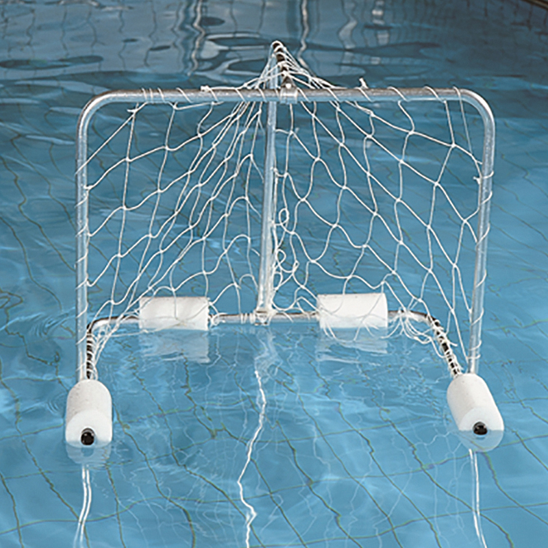 Schwimmendes Spieltor für Jung und Alt, aus eloxiertem Alu, zerlegbar, komplett mit PE-Schaum-Schwimmern und PE-Netz. Masse: 90 x 60 x 70 cm, ohne Ball.