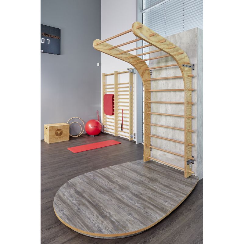 Neuartige und patentierte Sprossenwand, die sich für den Einsatz im Fitnessstudio, in der Physiotherapie oder das Training in den eigenen vier Wänden eignet. Die besondere Form mit Überhang bietet dabei unzählige Trainingsmöglichkeiten.
