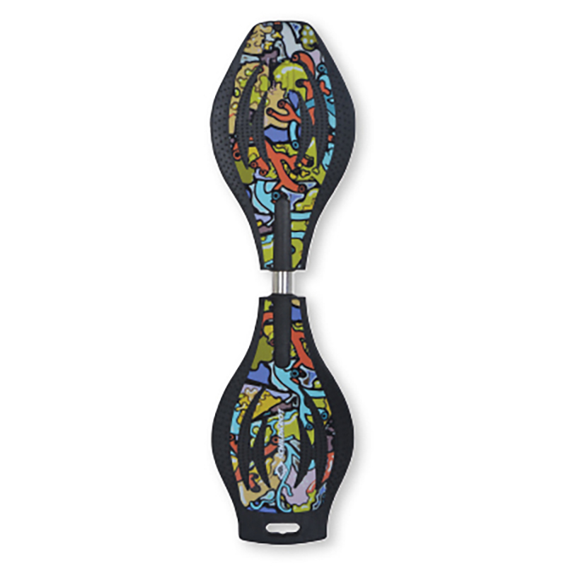Mit dem neuen Waveboard bekommt man durch wellenartige Bewegungen den nötigen Schwung nach vorne. Ein Muss für jeden Rollsport-Begeisterten! Das grosse Kunststoff-Deck mit Anti-Rutsch Noppen, welches auch für grosse Schuhgrössen geeignet ist, sorgt während der Fahrt für einen sicheren und festen Stand. Beide Plattformen sind durch eine flexible Torsionsfeder verbunden. Dank der unglaublichen Beweglichkeit ermöglicht das Waveboard eine schnelle Fortbewegung.