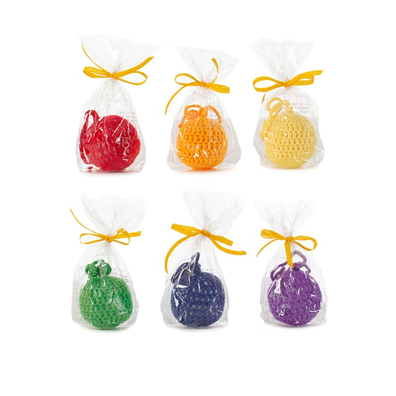 Die weichen, handgefertigten Bälle sind gerade so gross, dass bereits Babys im 1.Lebensjahr diese mit ihren Händen festhalten, umspannen, drücken und begreifen können. Sie sind mit superfeiner reiner Schurwolle in den Farben des Regenbogens rot, orange, gelb, grün, blau oder violett umhäkelt und haben eine dazu passende Garnschlaufe.