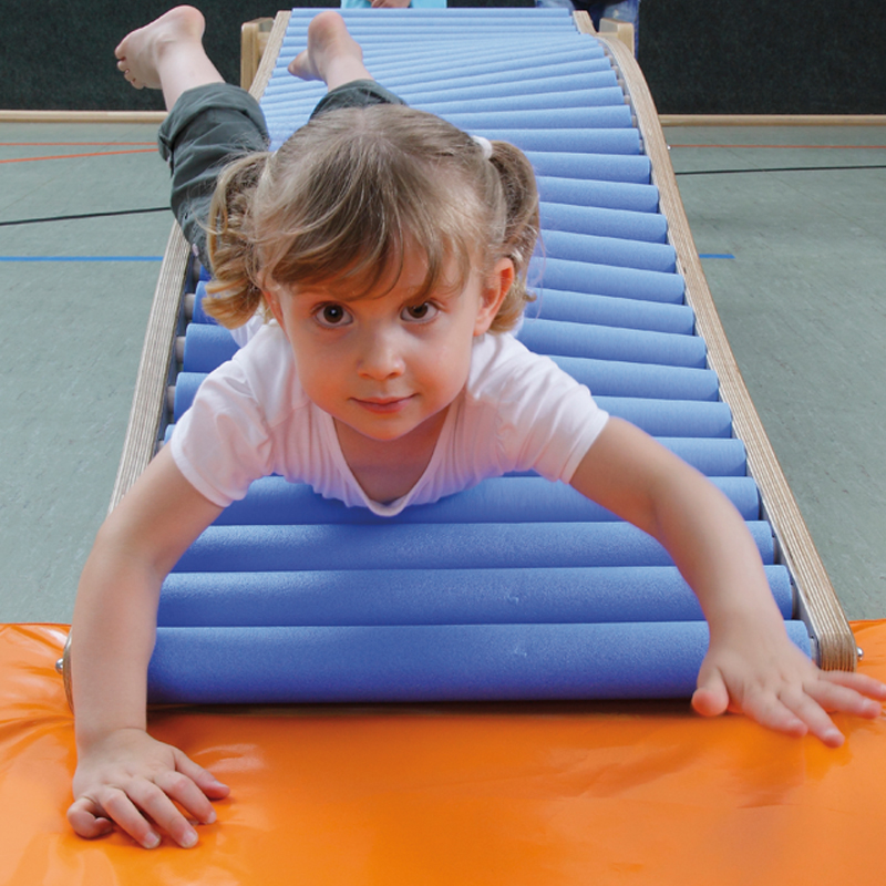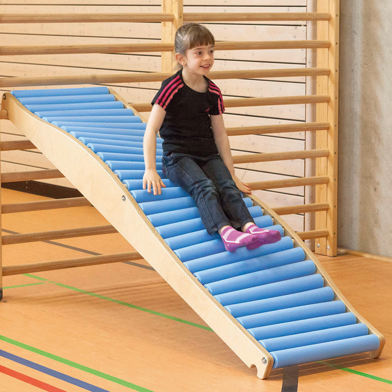 Die Wellenrutschen für Parcours und Bewegungslandschaften. Einfach in eine übliche Sprossenwand, in die Sportbox oder in die Trapez-Böcke einhängen und mit viel Spass die motorische Herausforderung geniessen. In Bauch- oder Rückenlage, vorwärts oder rückwärts, kniend oder sitzend können hier die Kinder herunter rollen.