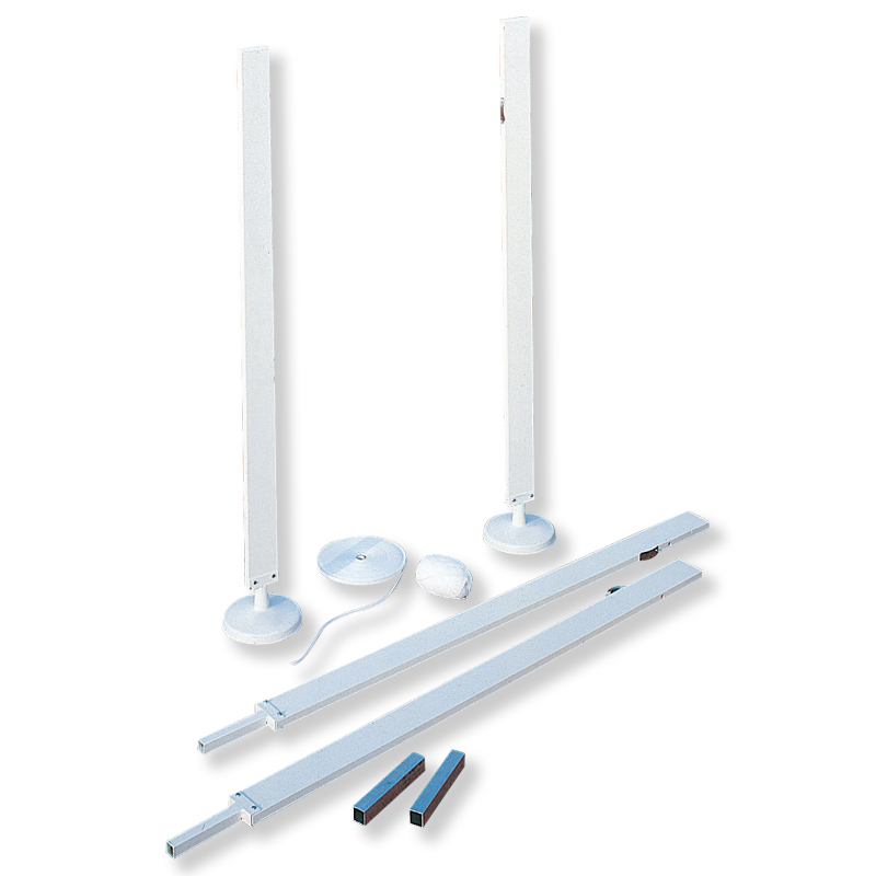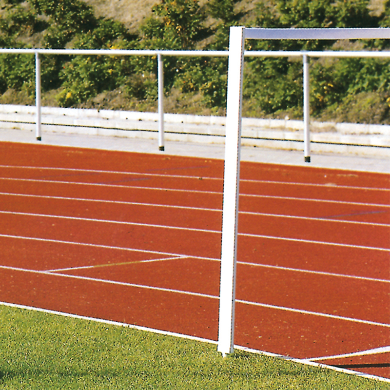 Zielpfosten mit Tellerfuss bestehend aus Aluminium. Diese haben eine Höhe von 1,40 m und beinhalten einen Deckel und eine Edelstahlfeder für die Zielbandhalterung. Wir empfehlen als weiteres Zubehör das Zielband.